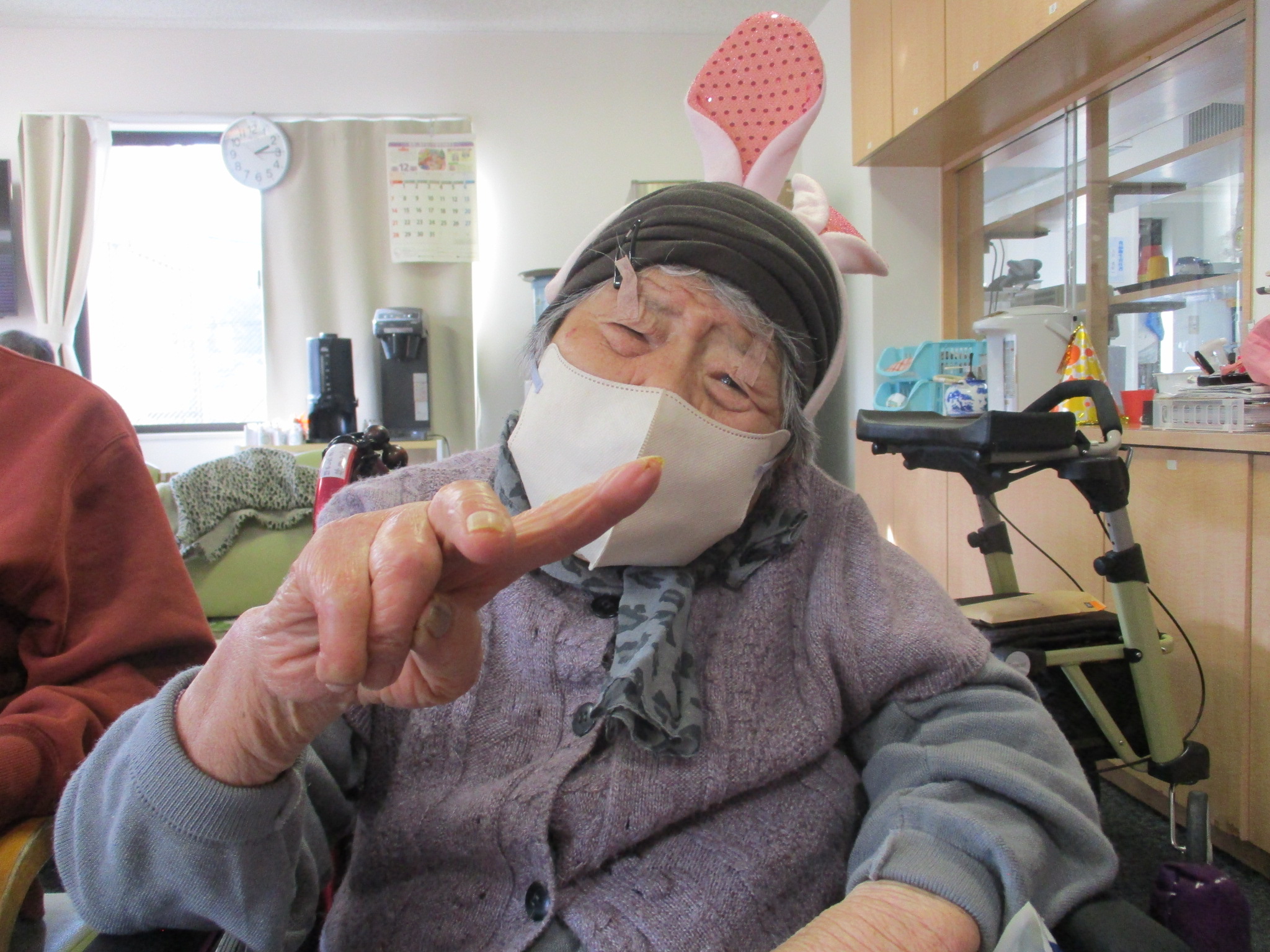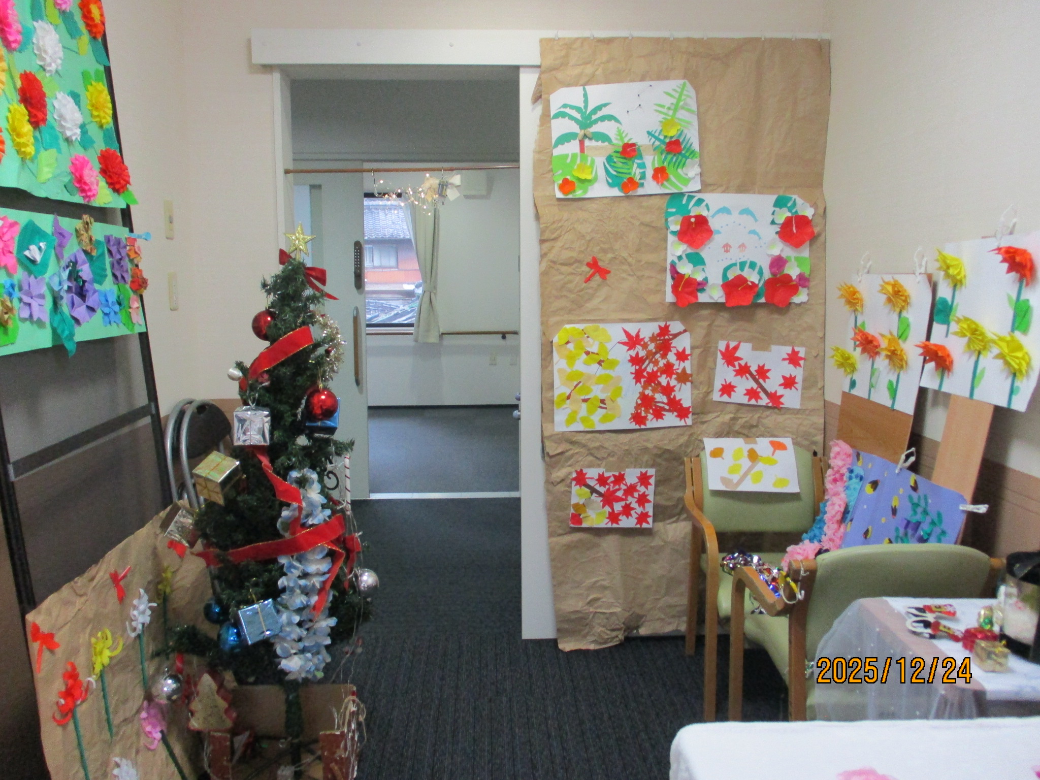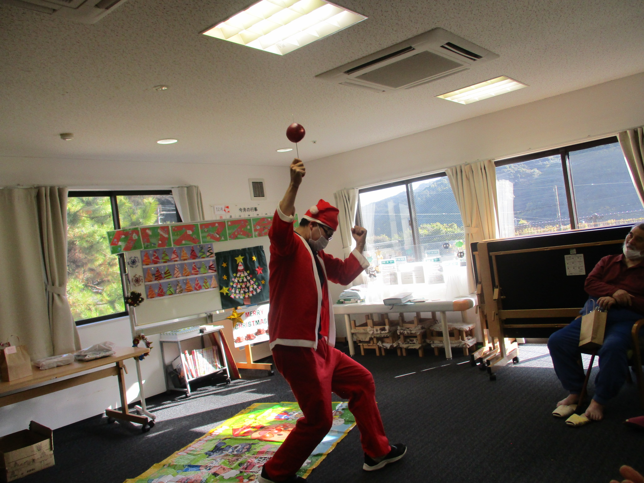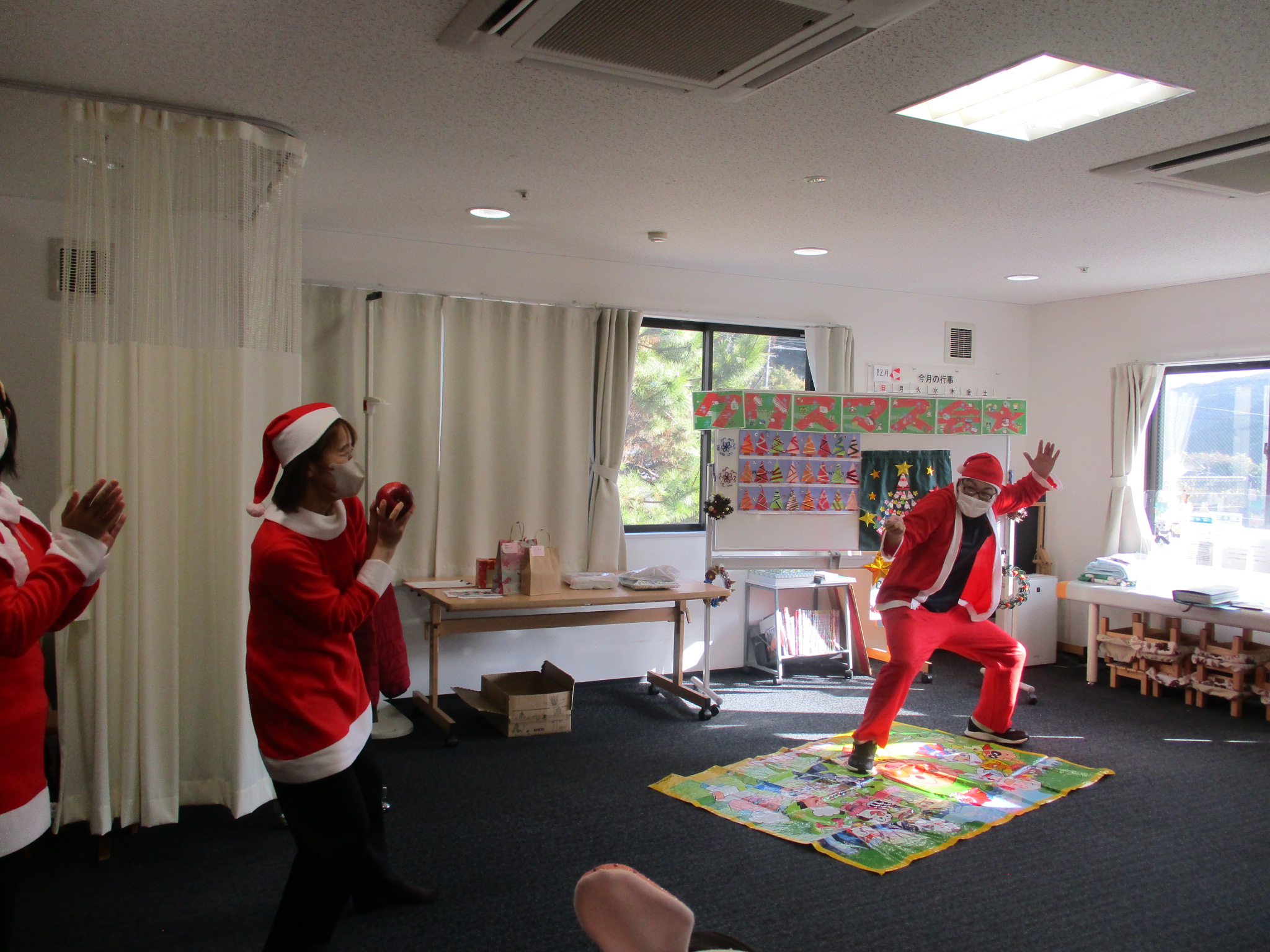 ご利用者様と職員でサンタ帽やサンタ衣装を身に着け、クリスマス気分満点です!