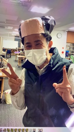 伝統(?)の宴会芸**「二人羽織」**に挑戦しました! 今回は「メイク編」と「ケーキ編」の二本立て。 職員が体を張って(顔を張って?)挑んだ、笑いあり、涙(の流れるようなメイク)ありの様子をお届けします!感動の演奏から一転、会場は割れんばかりの笑い声に包まれました。