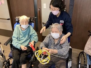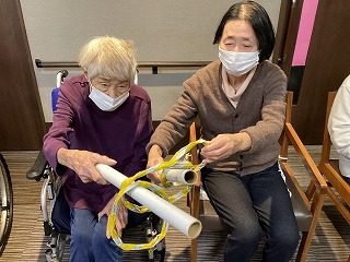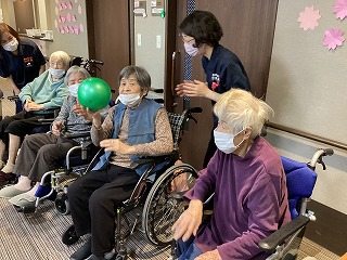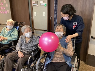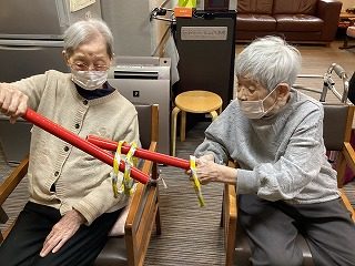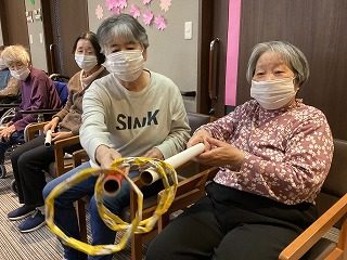 今月の室内レクも桃の節句に因んだゲームを行いました。