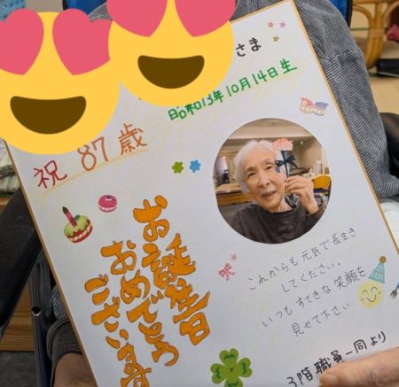 職員から色紙と誕生日プレゼントを贈らせて頂きました!