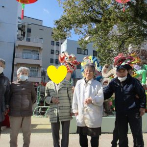 「派手だねぇ!」と、リハステーションあたごより借り受けたo職員お手製のきらびやかな長法被に目を奪われていました!数名の利用者様にもお祭り法被を着て頂き参加していただきました。お手製のかつらと利用者様お手製のマラカスを持ち、皆さまキラキラした笑顔でハッスル! 17周年の締めくくりにふさわしい、最高にハッピーな空間となりました。