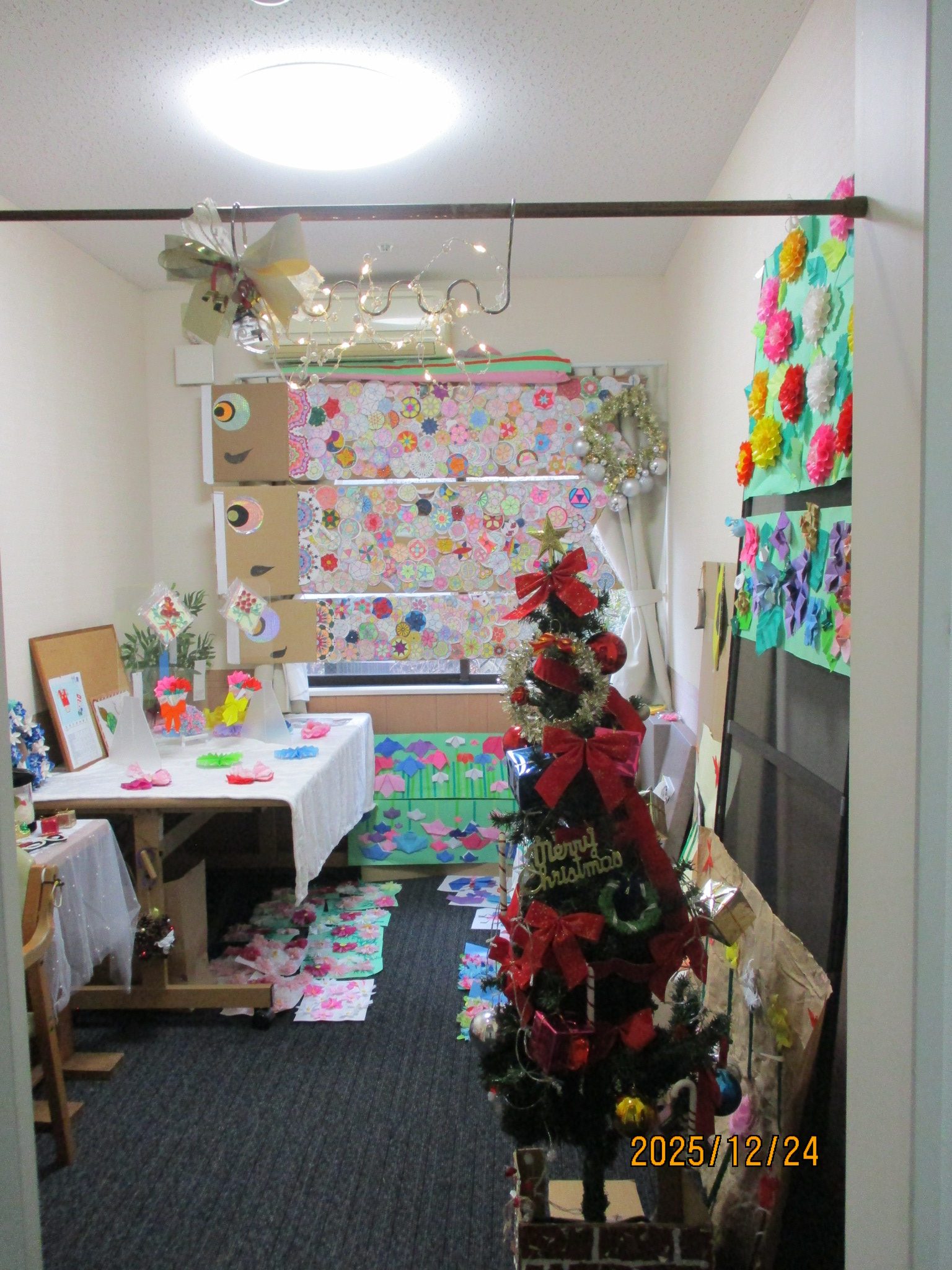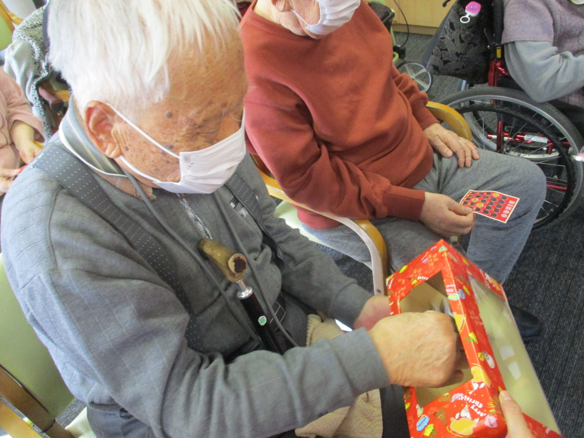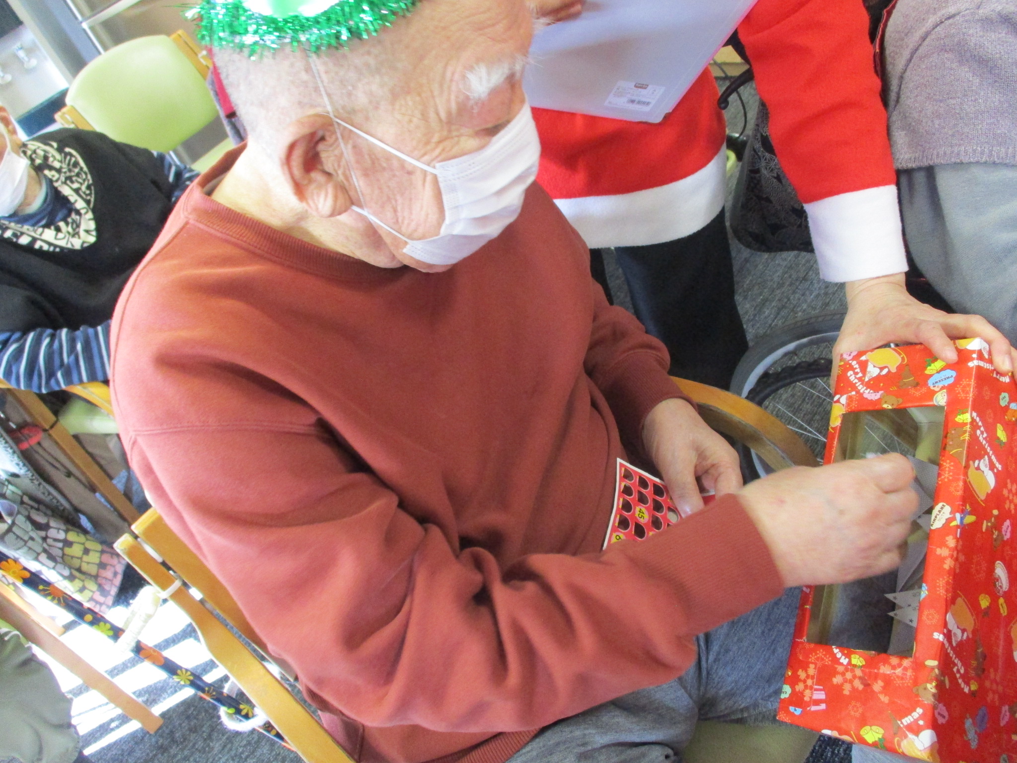 ご利用者様と職員でサンタ帽やサンタ衣装を身に着け、クリスマス気分満点です!