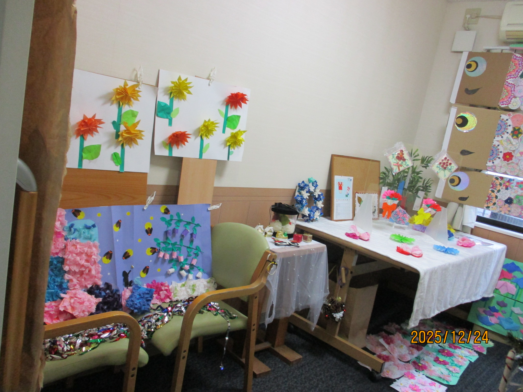 今年、室内レクリエーション等で作成したものを展示しています(。-`ω-)v