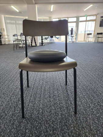 この不安定なクッションの上に座ったり、乗って立つことで、無意識のうちに全身の小さな筋肉が使われ、体幹が鍛えられます。