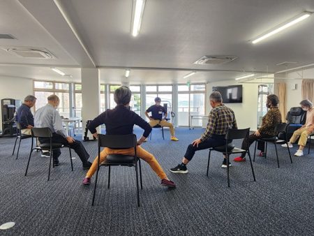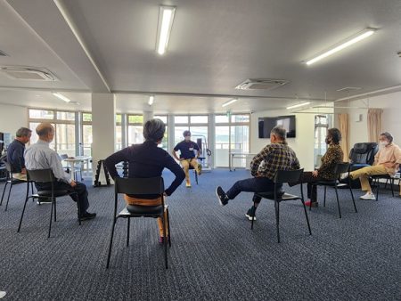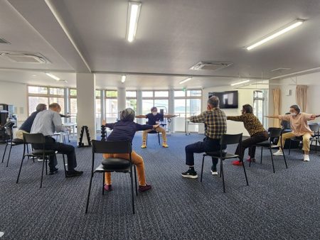 この軽量なダンベルを使って、腕や肩、背中の筋肉を無理なく鍛える運動を集団プログラムに取り入れています。