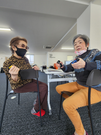 集団体操の時間でもセラバンドを使ったプログラムを取り入れています。みんなで楽しく、安全に、全身の筋力と柔軟性を高めていきましょう!
