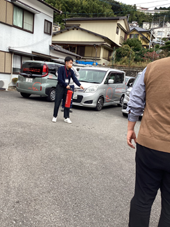 模擬訓練のあとは消火器のレクチャーと訓練を指導を頂きました。