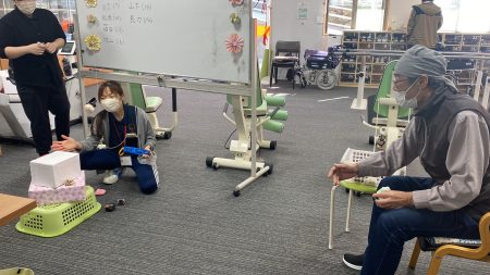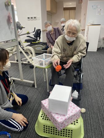 今月の室内レクも桃の節句に因んだゲームを行いました。
