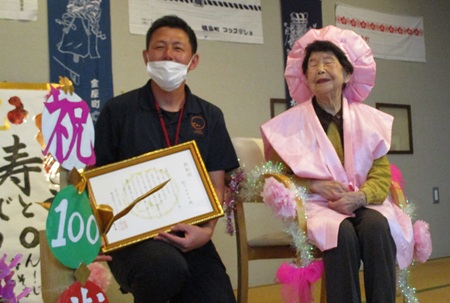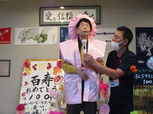 百寿のお祝いには、ヒューマン・ネットワーク代表である