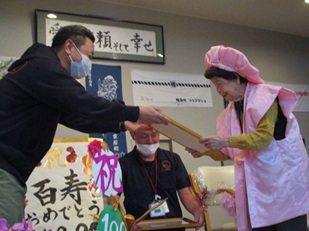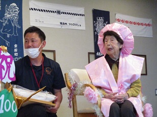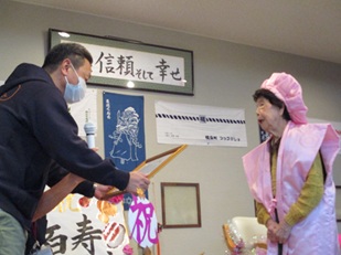 百寿のお祝いには、ヒューマン・ネットワーク代表である