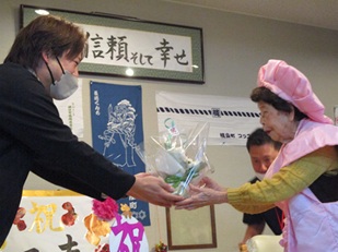 Y社長もお越しくださり、M様へ記念の賞状と記念のお米、