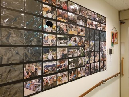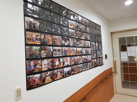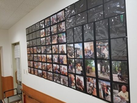 先日なのですが、特定施設入口のスロープ側の壁に新しく写真掲示板ができました!