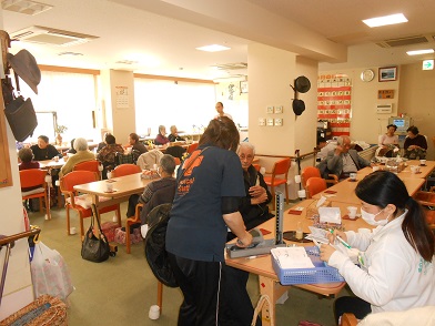 バイタル測定が終わった利用者様からお風呂に入ったり、物理療法をしたりゆっくり周りの利用者様とおしゃべりしたりします。DSCN0140