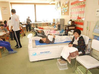 皆様、気持ちよさそう ウォーターベット(青いシーツの機械)は特に人気が高いです。