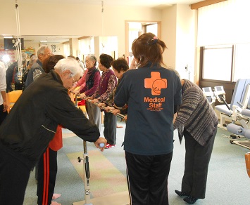 平行棒体操も行ってます。 皆様、真剣に取り組まれていますよ