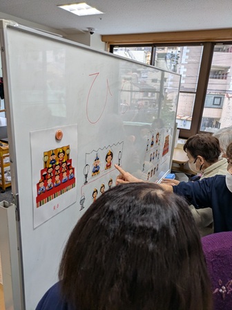 ひな壇のイラストを見本に、同じようにひな人形のイラストを並べていくゲームでしたが