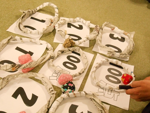 今回は、輪の中にお手玉を入れるゲームを行いました