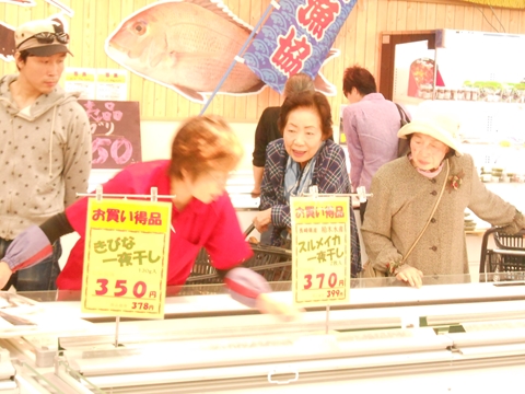 新鮮な野菜やお魚等がたくさん揃っている場所で、利用者のみなさんも何を買おうか迷ってられてました