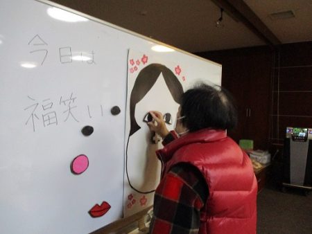 そして1/23(月)はレクレーションで『福笑いと習字』を行ないました。
