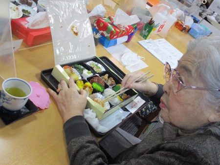 今回は『花ござ』さんのお弁当でしたが、当日は大雪になり、出前を楽しみにされていた方々はお休みを余儀なくされた為、来月も同じお店での出前となりました!!