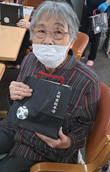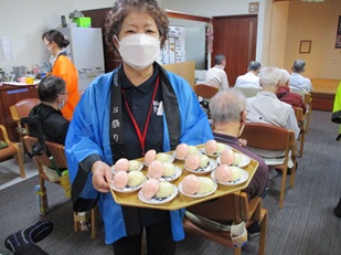 手作り紅白饅頭に皆様美味しそうに