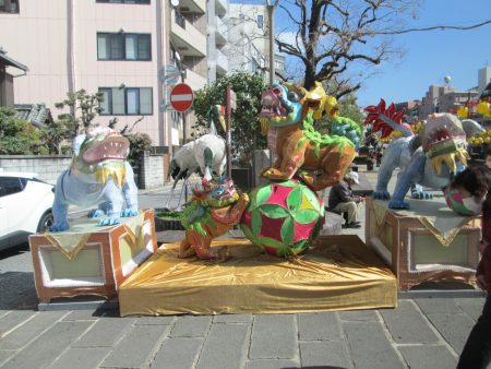 中島川周辺の大きなオブジェの前で写真を撮りました!!