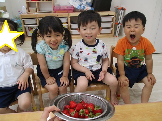 「これがいいー!」「こっちがいいー!」と、イチゴを前に、食べたい気持ちが抑えきれない子ども達(笑)