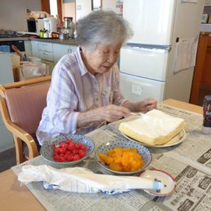 昼食は利用者様が作られたチラシ寿司と吉宗の茶碗蒸しを