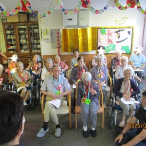 食事の後は一呼吸入れてから2階の利用者の方と一緒に敬老会に参加されました