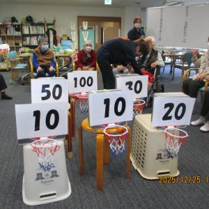 今回はバスケットリンクにボールに入れ得点を競ってもらいました。