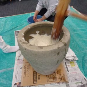 みんなで頑張って餅をつきました!!