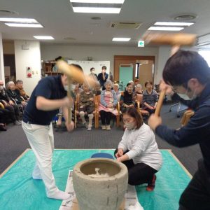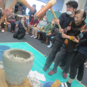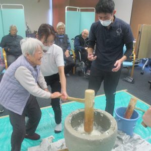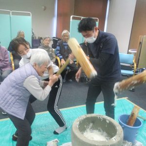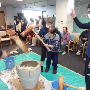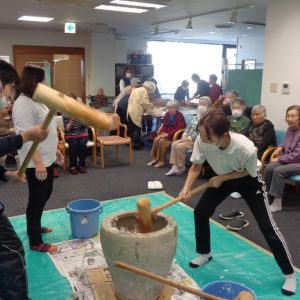 26日にデイサービスのまごころで餅つき大会をしました!