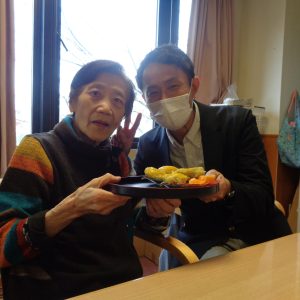 誕生日会の途中で主治医の有馬先生が往診に見えられ、一緒にお祝いして頂きました。