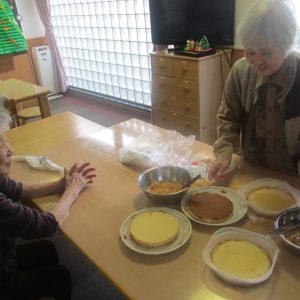 初めに各階でクリスマスケーキをデコレーションしました。