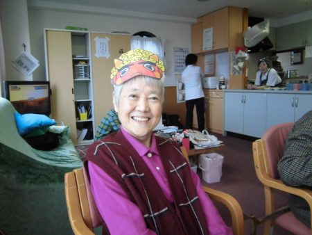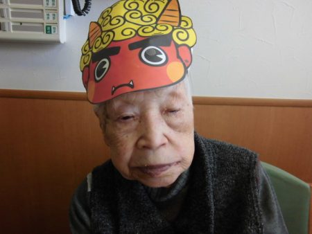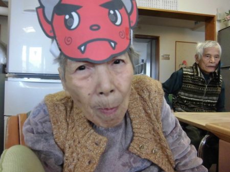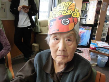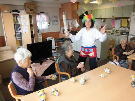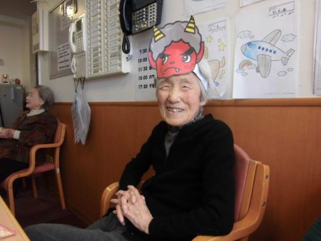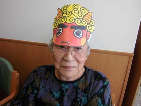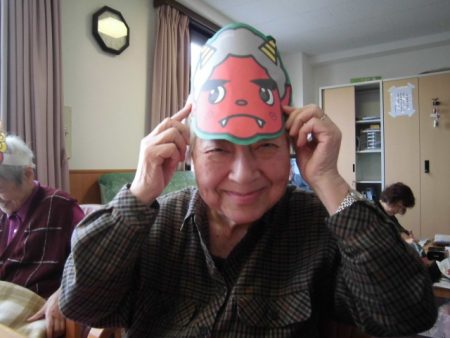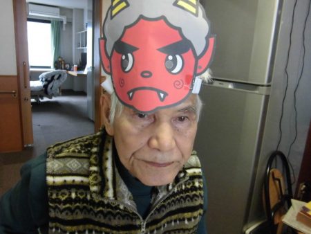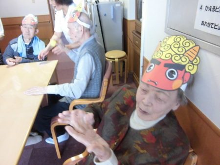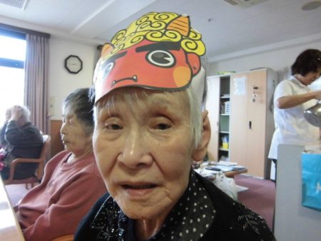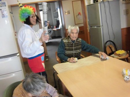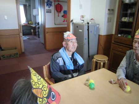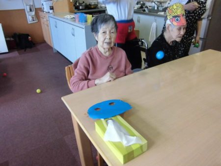 入居者様が力を合わせて、豆ではなくボール(?)で鬼退治!