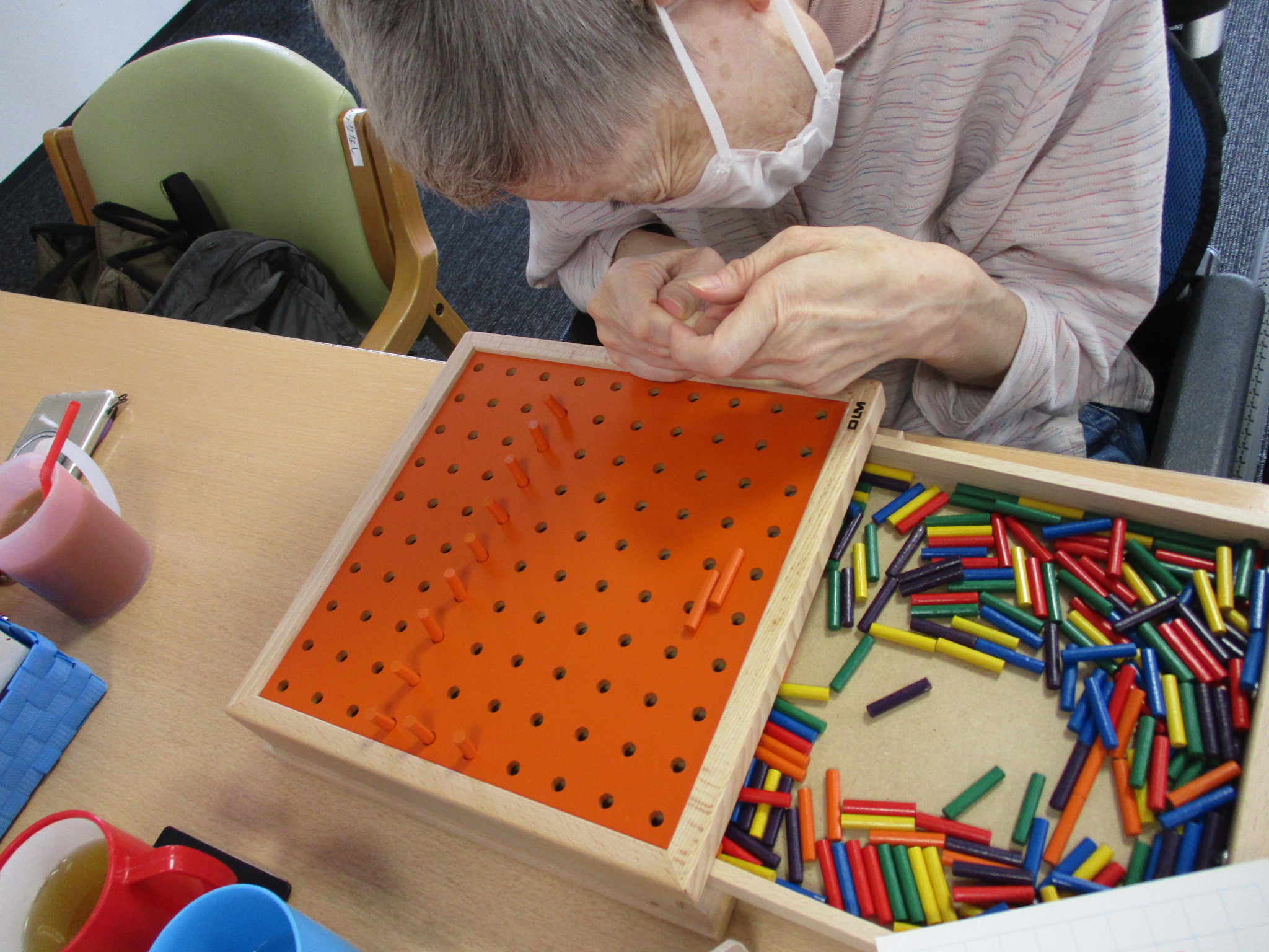 こちらの利用者様は「ペグボード」に取り組まれております。