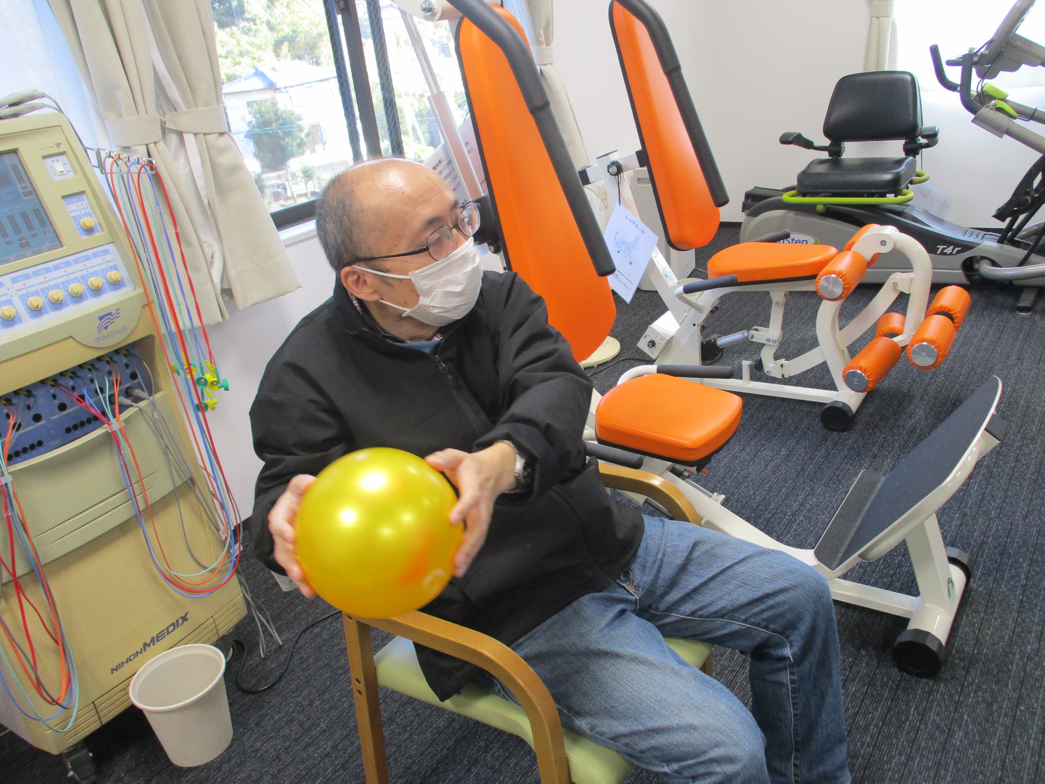 ボール体操では大きく分けて腕、肩、背中、お腹、足の体操に