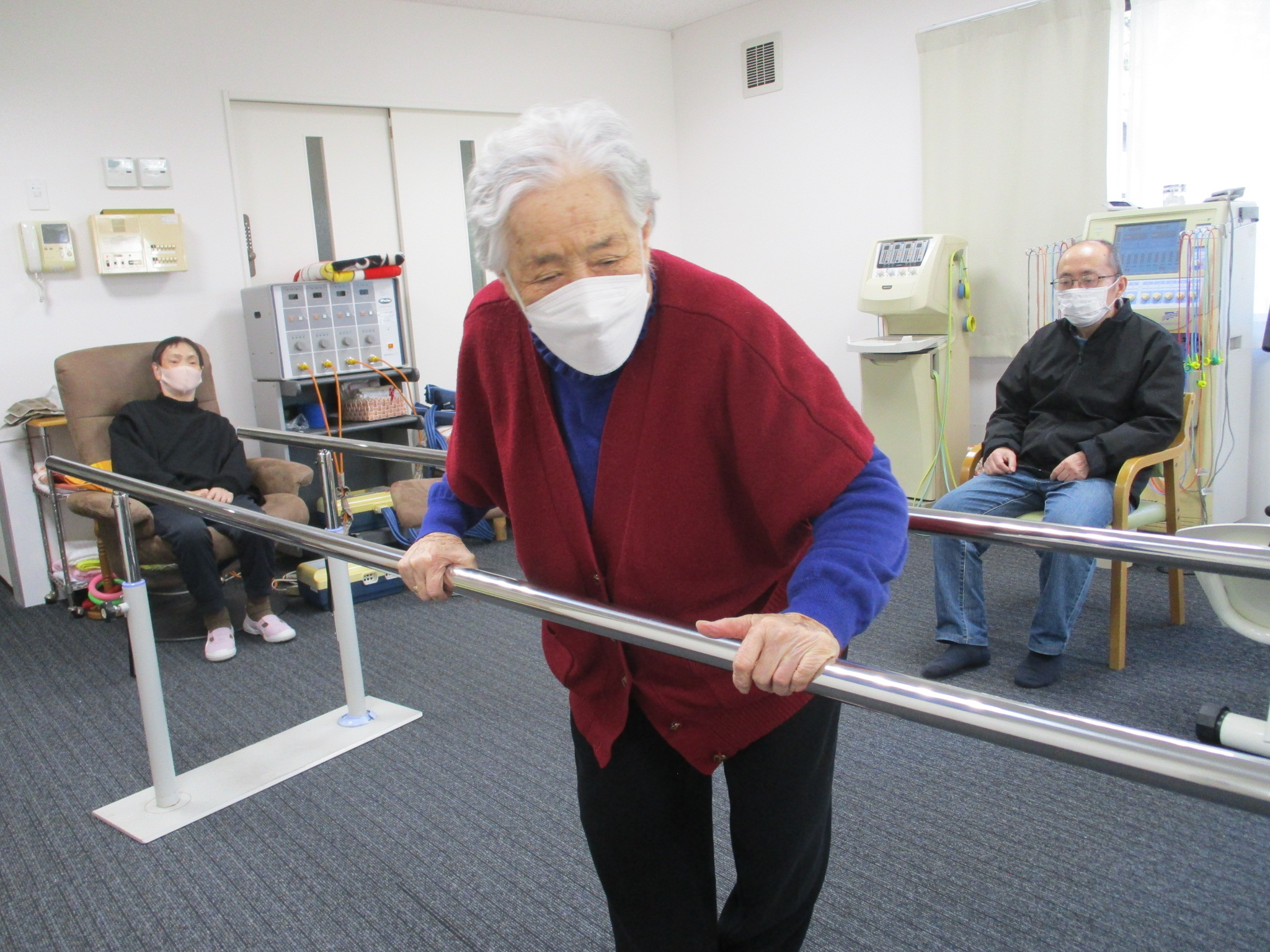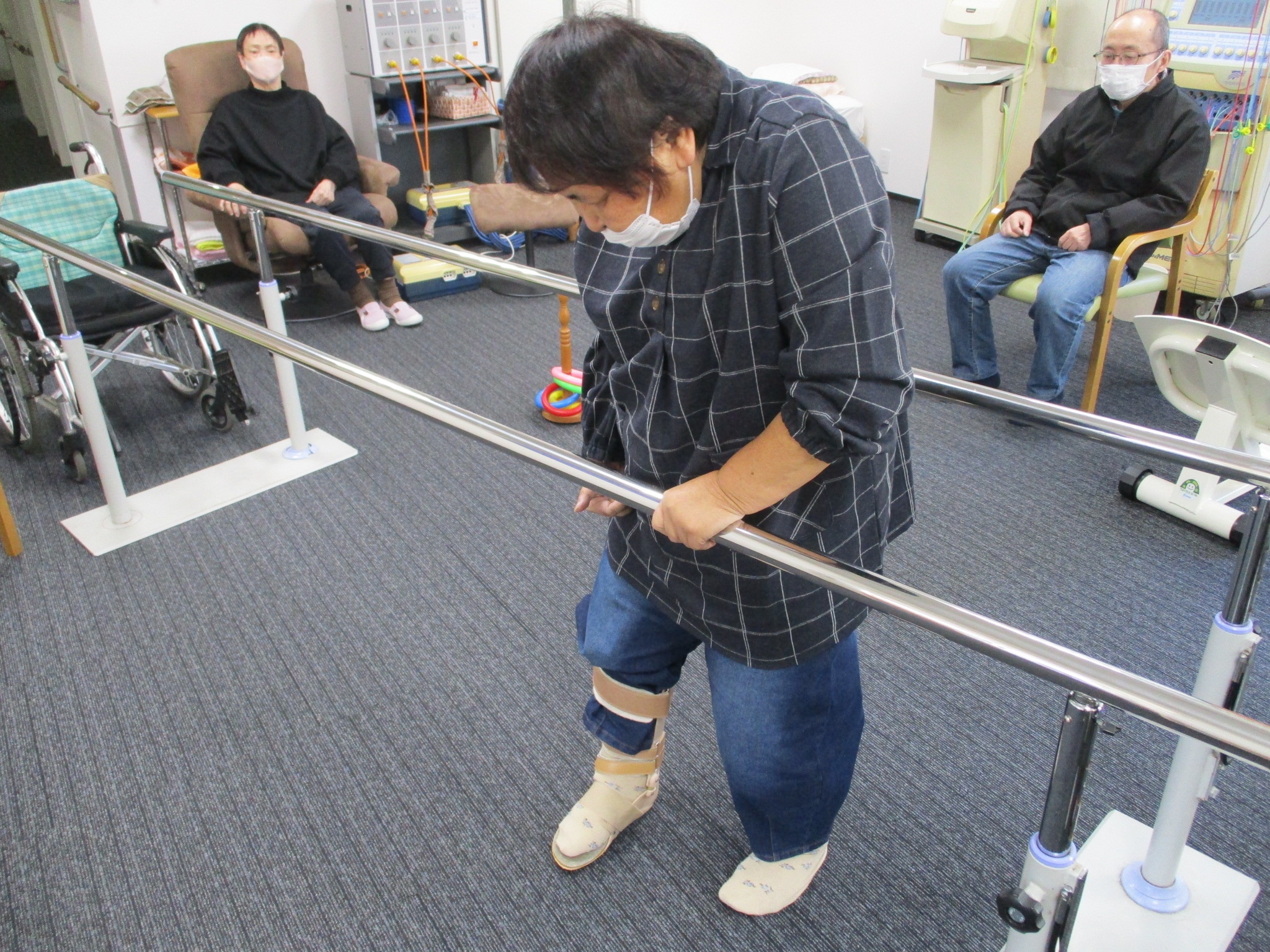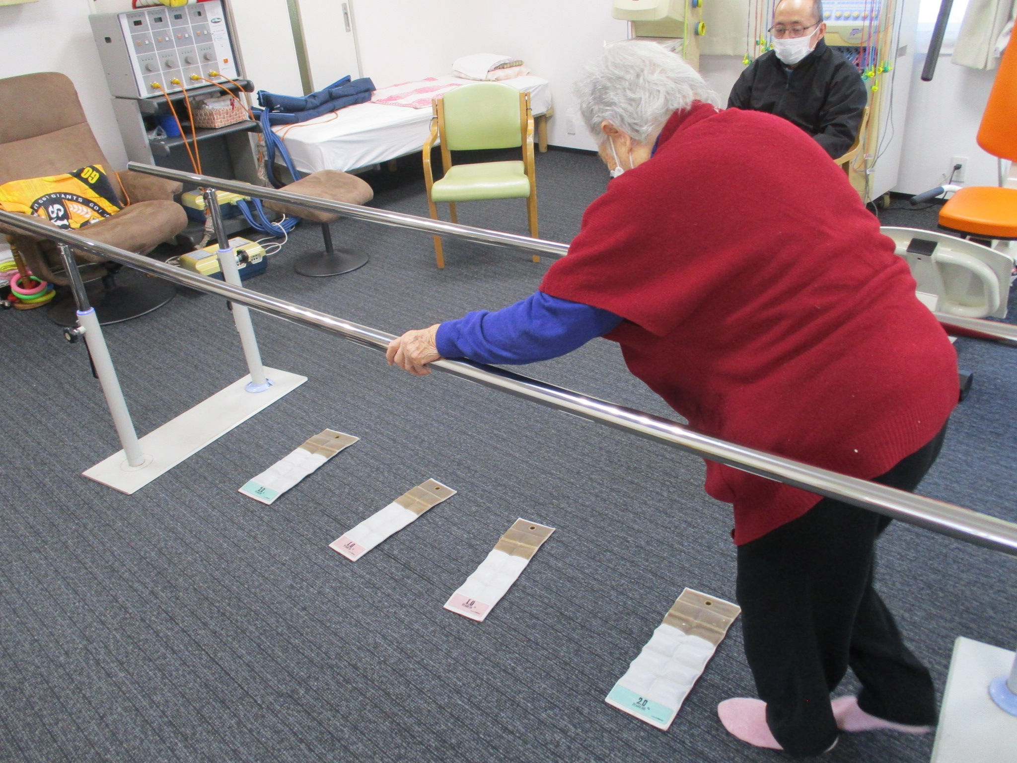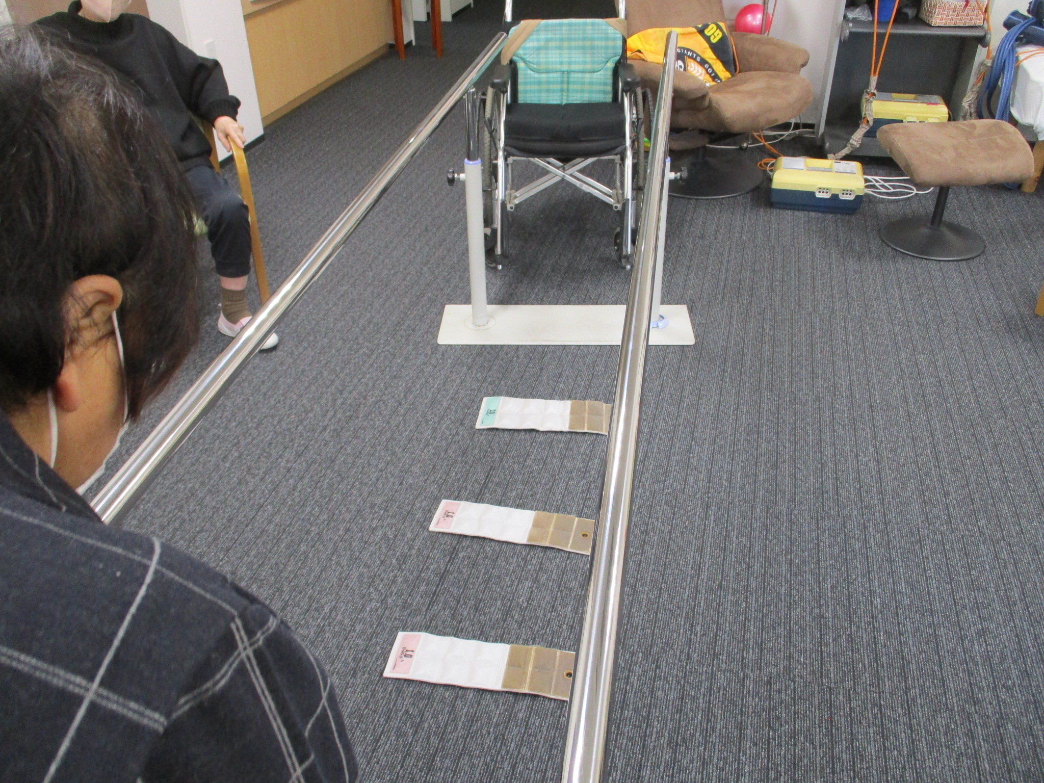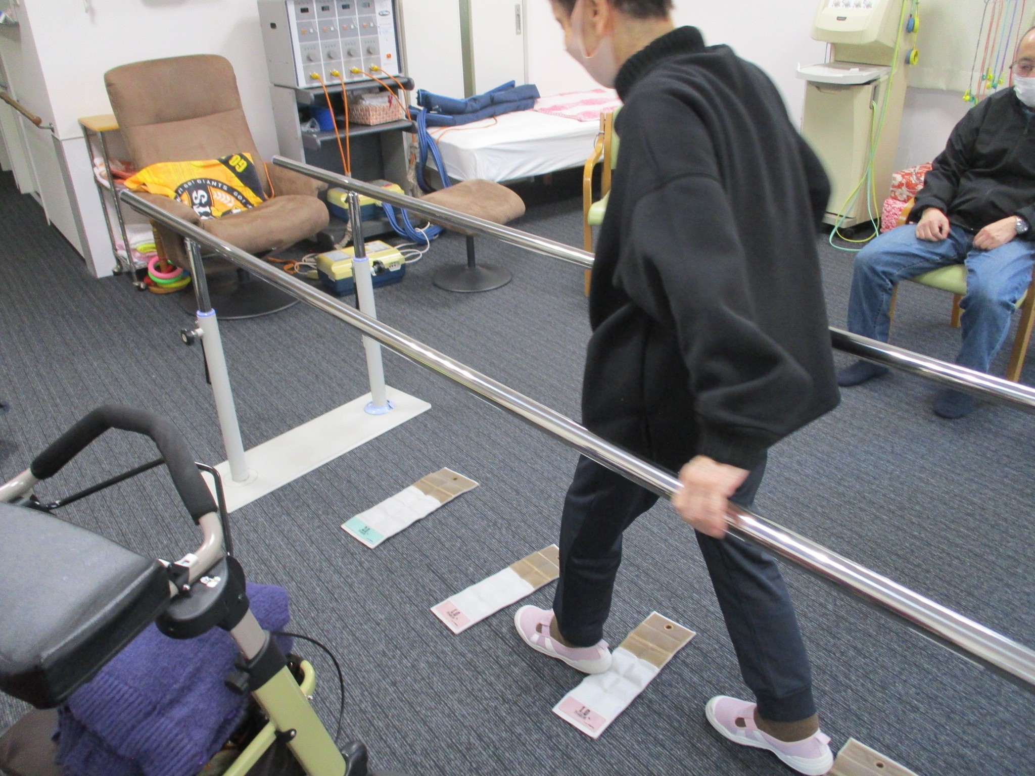 障害物有での歩行、横歩きでの歩行訓練を行いました。