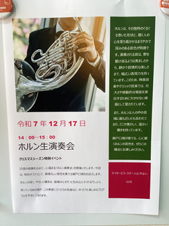 演奏が始まると、ホールの空気が一変。12月ということもあり、**『ジングルベル』や『昭和歌謡』**といった、冬にぴったりの曲や懐かしの名曲を披露していただきました。 演奏が始まると、優しく、どこか懐かしい木の音色がホールいっぱいに広がります。 スイスの山々を連想させるゆったりとしたメロディに、ホルンの深く、包み込むような低音に、皆様目を閉じてじっくりと聴き入っていらっしゃいました。音色に合わせて口ずさむ方もいらっしゃり、会場が一体感に包まれた温かいひとときとなりました。