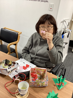 出来上がった作品を手に、笑顔を見せてくださる利用者様。皆様の嬉しそうな表情を拝見すると、スタッフも温かい気持ちになります( *´艸`)
