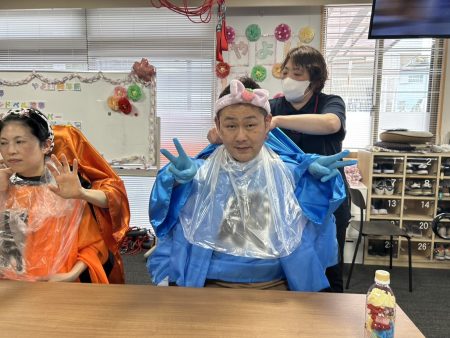 「似合ってますか?」という問いに、利用者様からは「一番可愛いよー」と謎の一言が。。。
