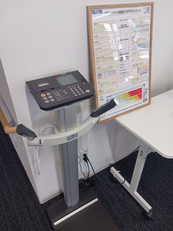 リハステーションやよいⅡでは、初回利用時、3か月毎に体組成計で身体の内側(身体の中がどうなっているか)を数値で知ることができ、比較しながら身体の変化を感じられます。