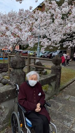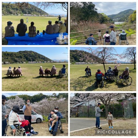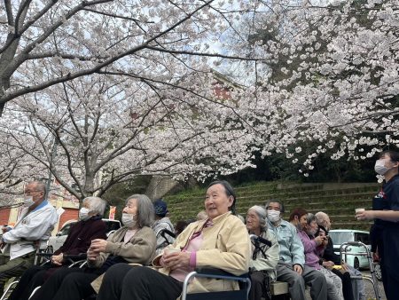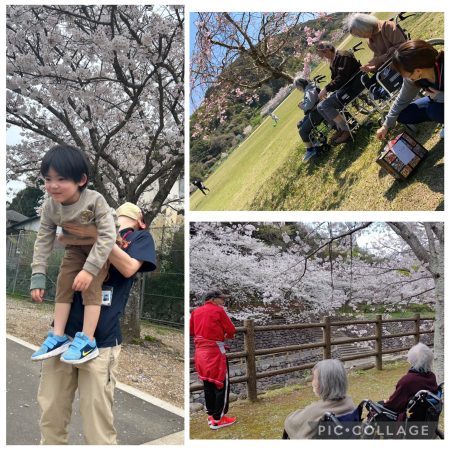 風に舞う花吹雪の中を通り抜ける瞬間は、まるで映画のワンシーンのよう。 「わあ〜!すごい!」「雪が積もったみたいに真っ白ね」と、感嘆の声が止まりませんでした「 景色を楽しむだけでなく、そんな**「心の交流」**ができるのも、お出かけの醍醐味ですね。春のパワーをたくさんチャージした一日となりました。「つれてきてくれてありがとう」というお言葉を頂きましたが、皆様のキラキラした笑顔を見ることができ職員一同、こちらこそ感謝の気持ちでいっぱいです。